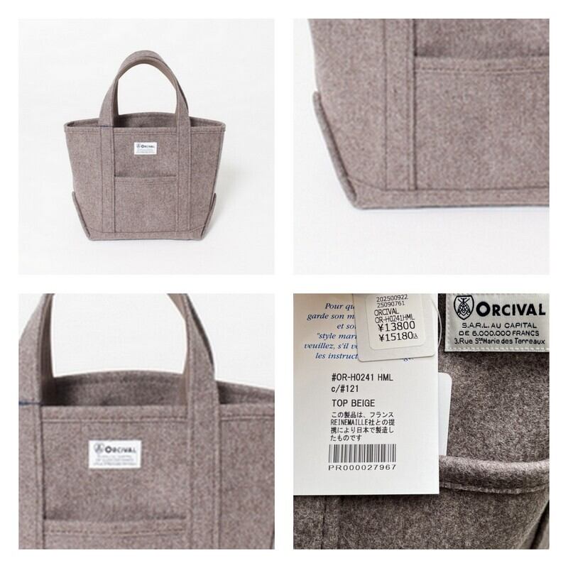 Orcival(オーチバル)ヘビーメルトン トート バッグ Sサイズ OR-H0241HML TOP BEIGE