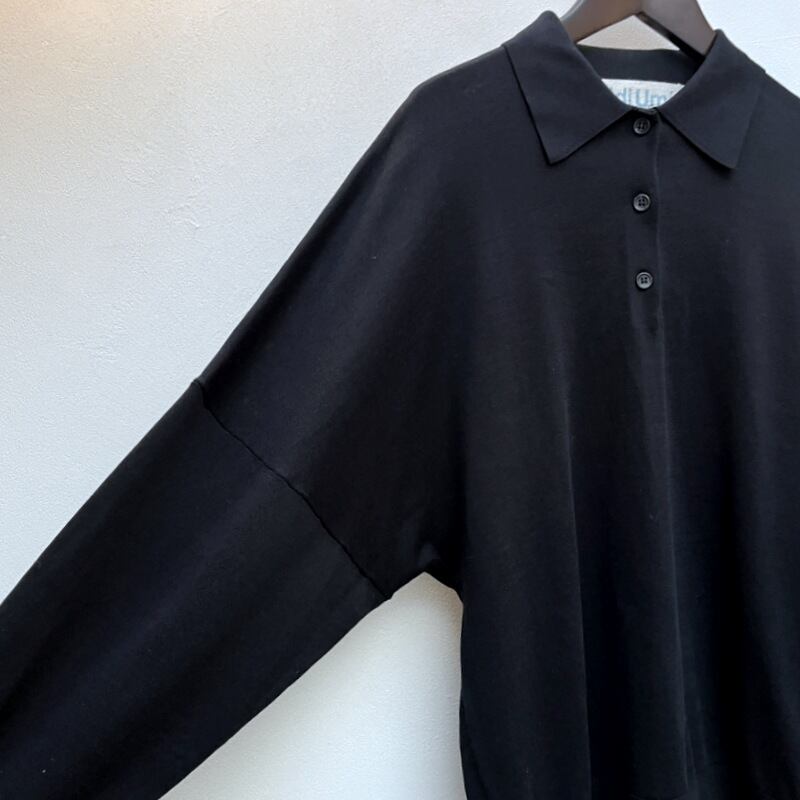 ポロ襟デザインできちんと感がありながら、ニット素材ならではのやわらかく優しい着心地。