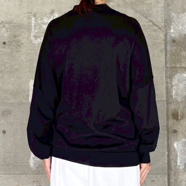 袖口と裾はリブ仕様で、全体はゆったりしながらもメリハリのある印象に。