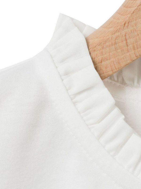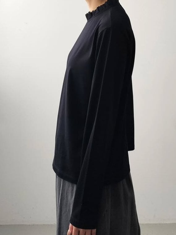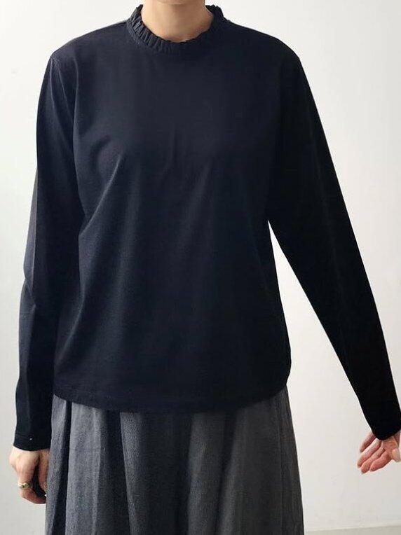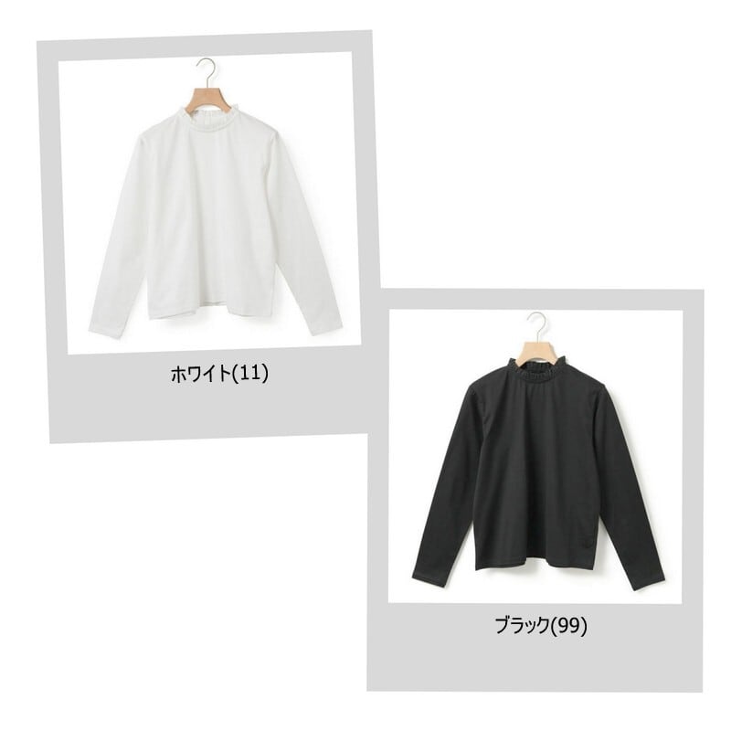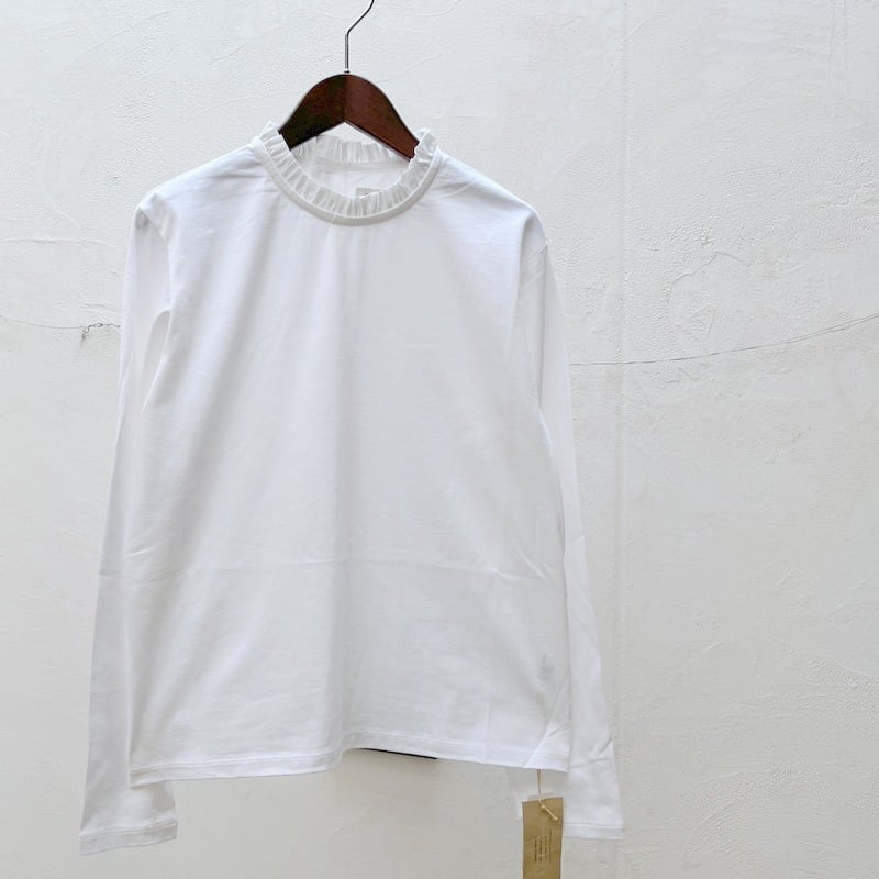 首元のフリルがさりげなく華やぐ、大人のための上品カットソー。