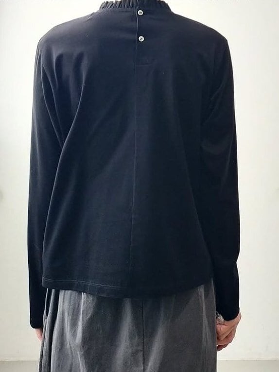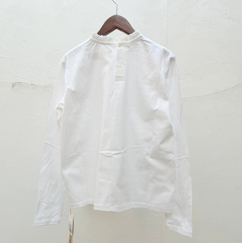カットソーでありながら布帛ブラウスのようなきちんと感のある一枚に仕上がっています。
