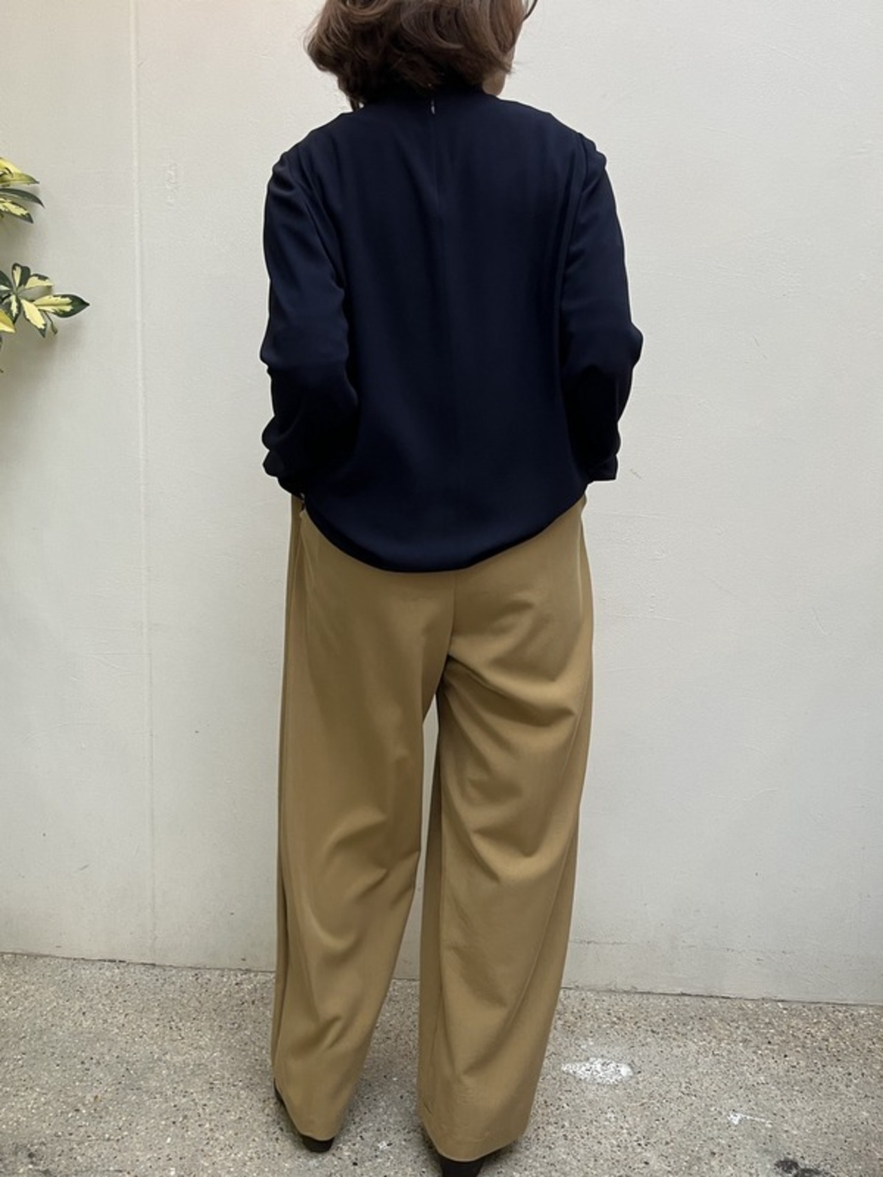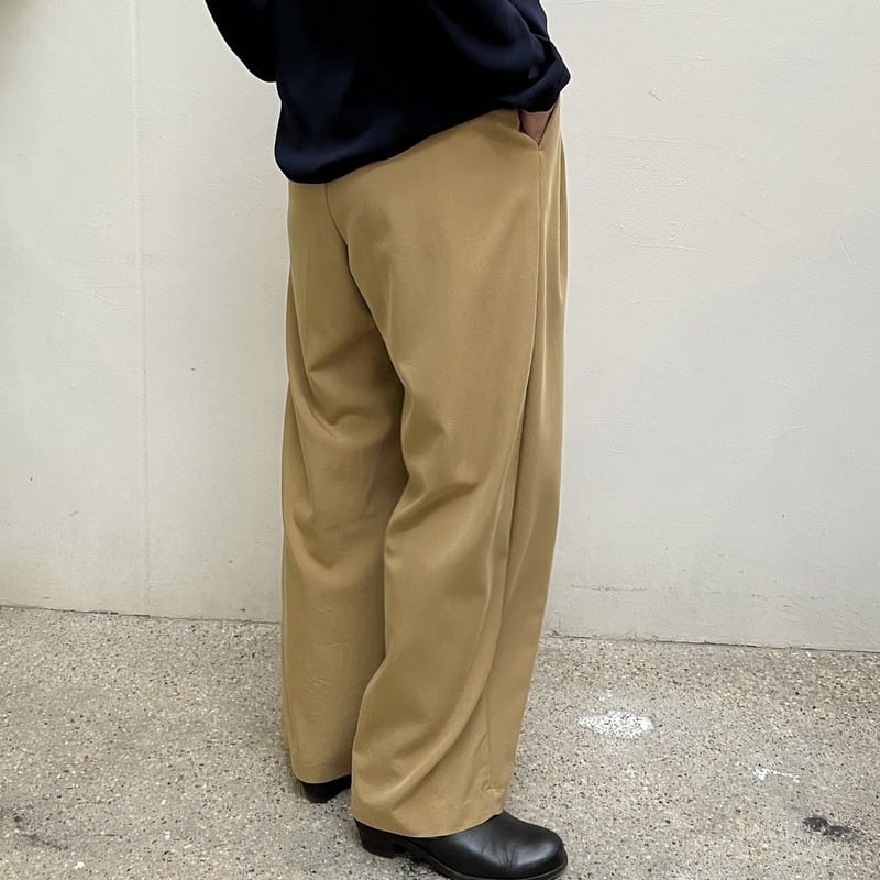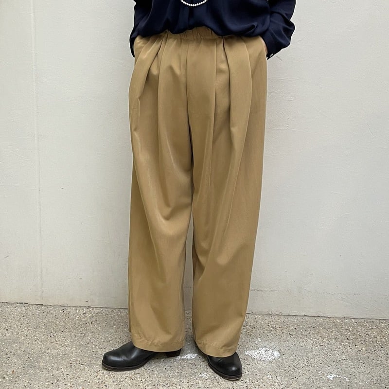 深いタックを施した、ドレープがきれいなワイドパンツ