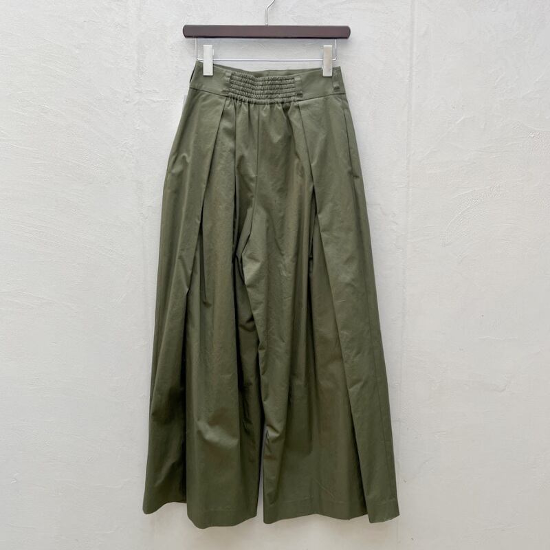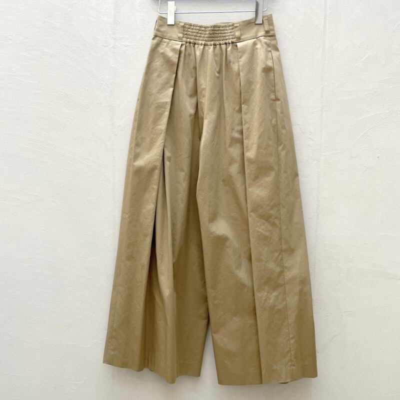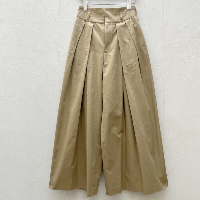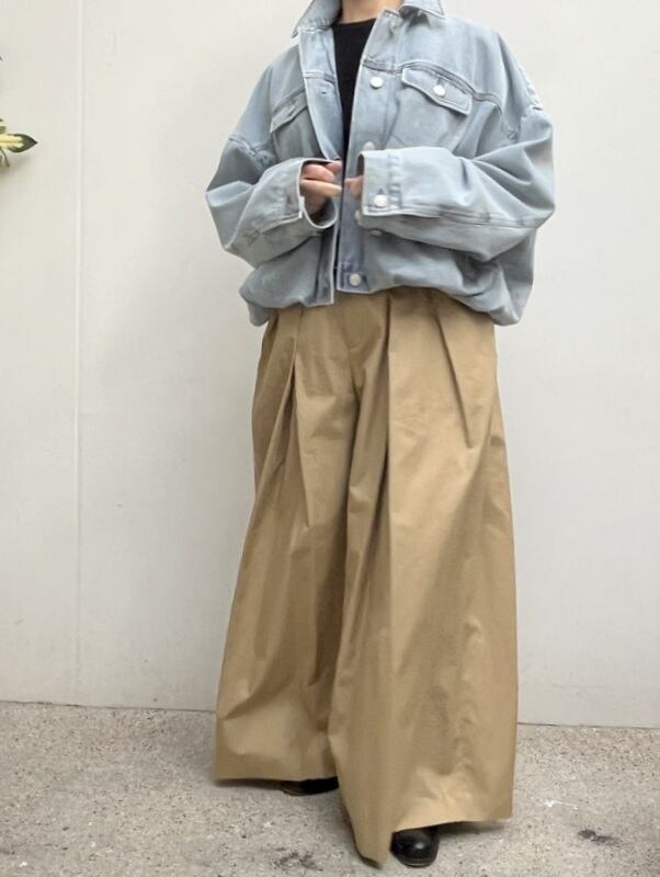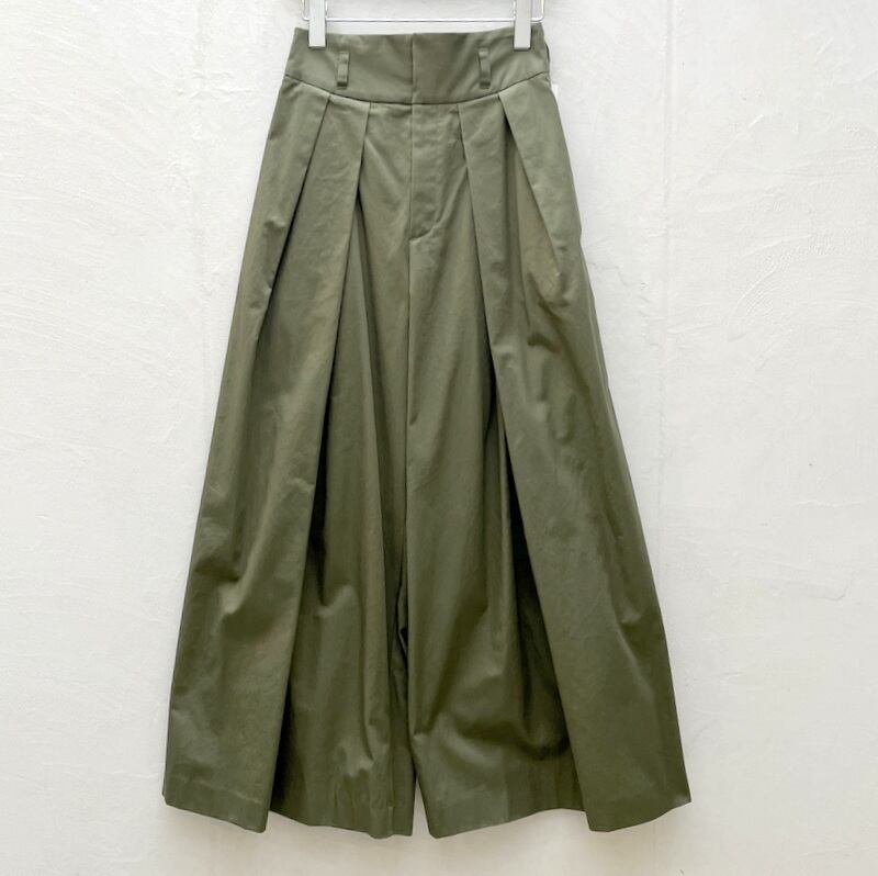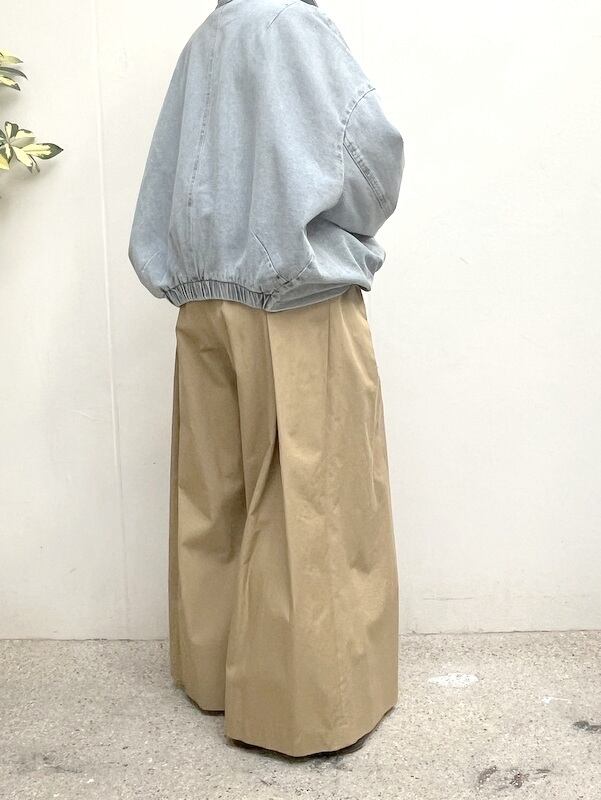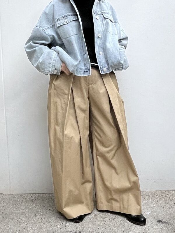 複数のタックを入れたっぷり分量を出したワイドパンツ