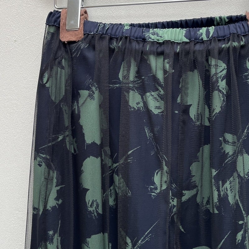 軽やかな透け感のチュールと遊び心のあるプリント柄が新鮮な組み合わせ