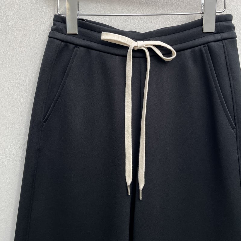 タテ・ヨコ両方向に伸縮性のあるポリエステル素材を使用し、動きやすさと上品な落ち感を両立した一本です。