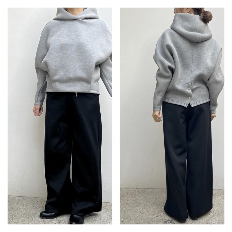 セミワイドのシルエットが体のラインを拾わず、バランス良く着こなせます。
