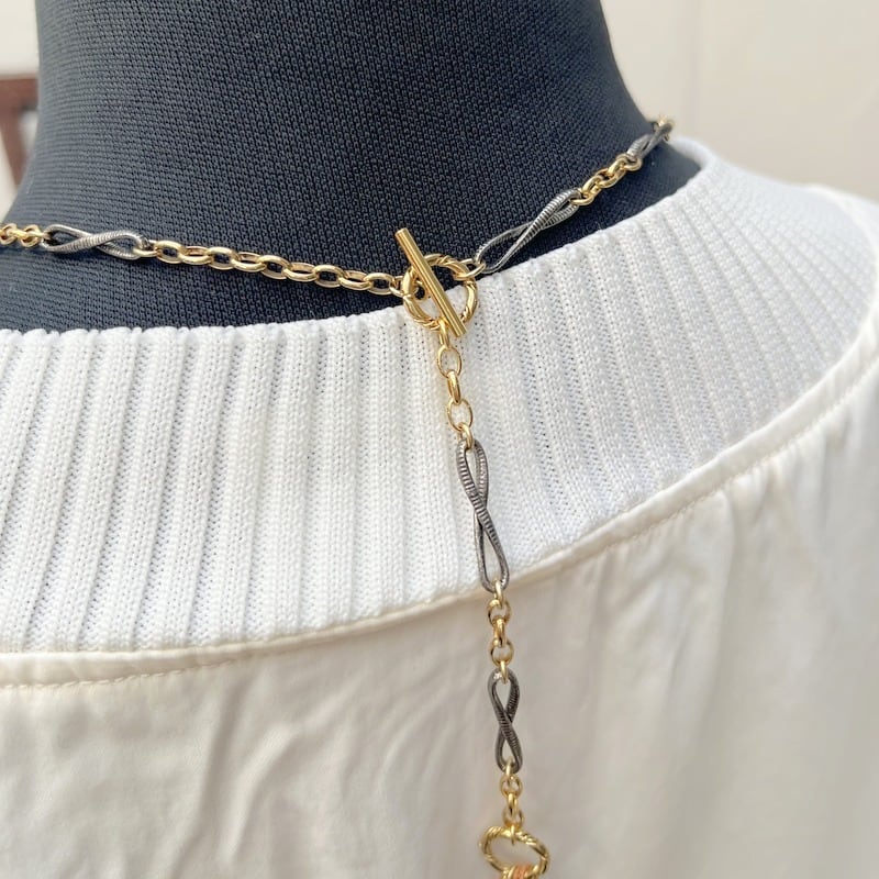 CO*STARRING (コ・スターリング)ツートーンチェーンのロングネックレス 25-7-001-LNE