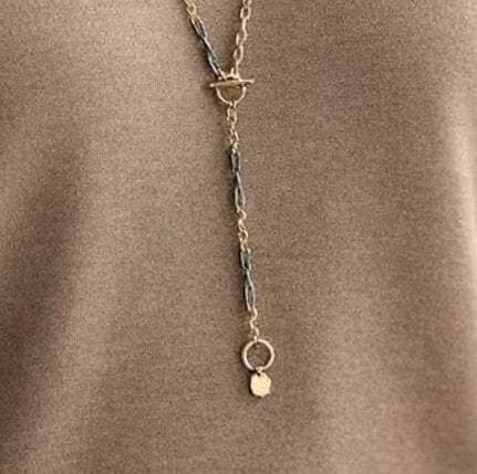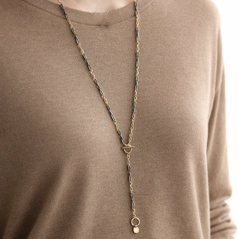 ニュアンスカラーが目を惹く、大人のツートーンロングネックレス