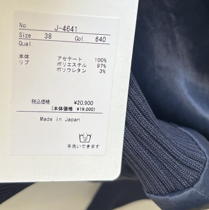 素材:アセテート 100%(リブ:ポリエステル97%ポリウレタン3%)