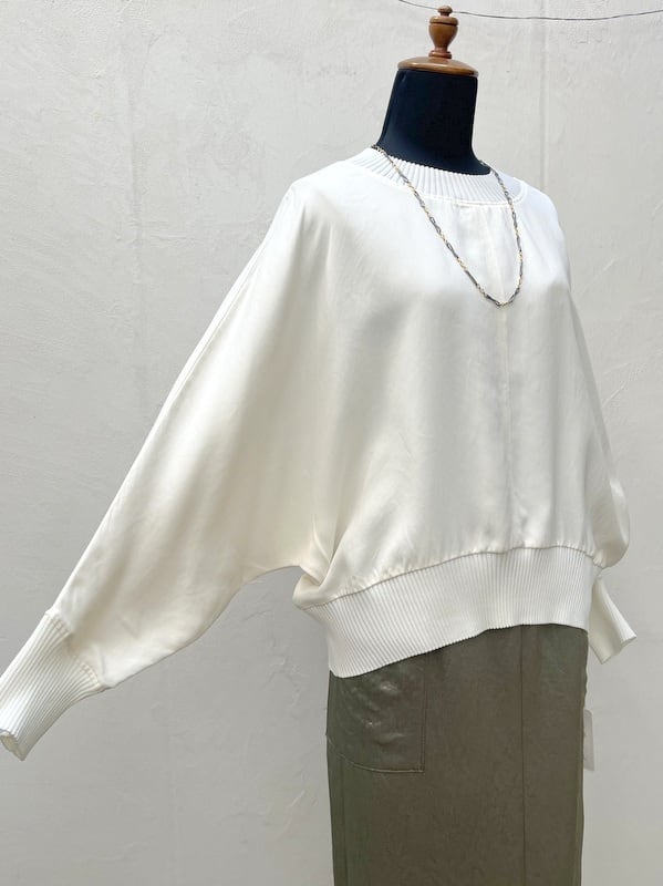ma couleur(マ クルール)サテン×リブ ドルマンプルオーバー