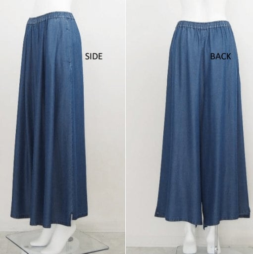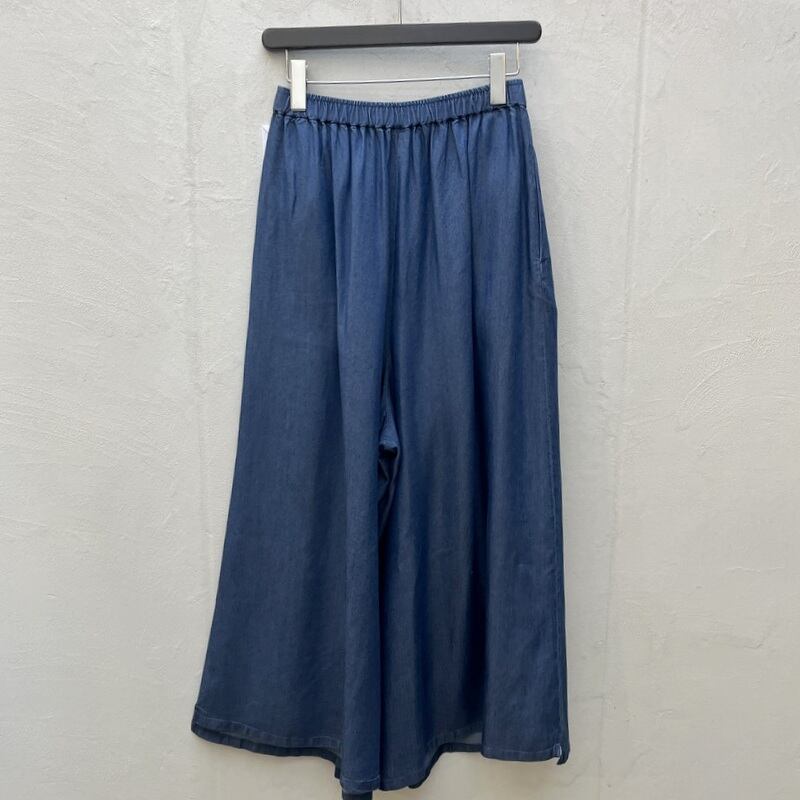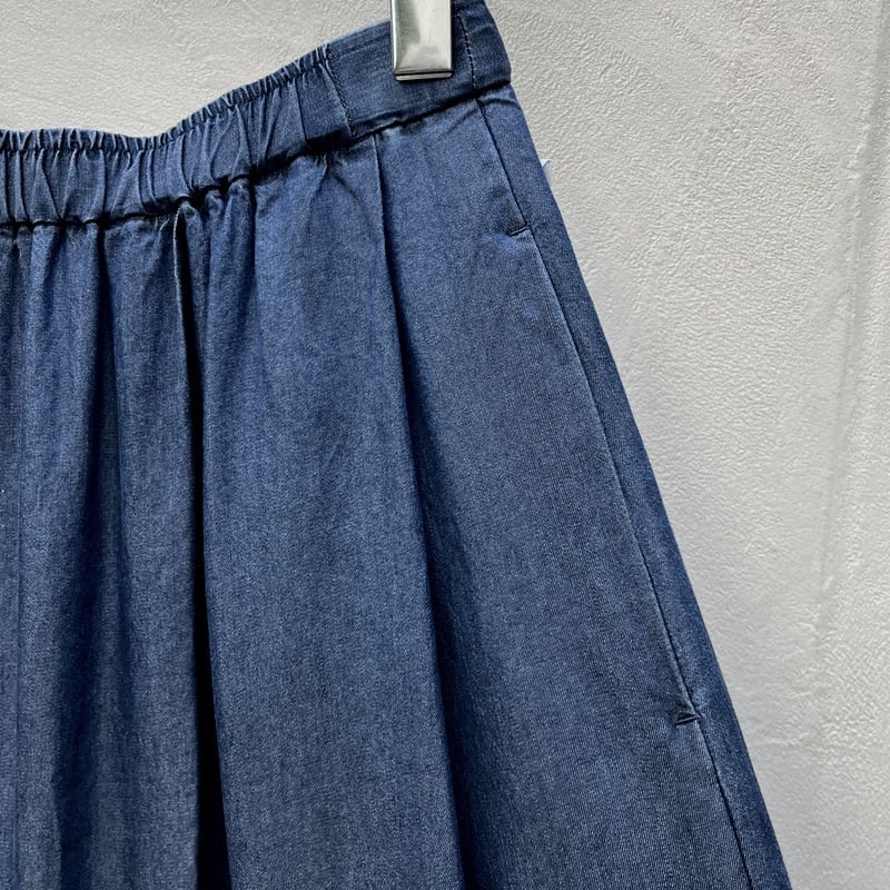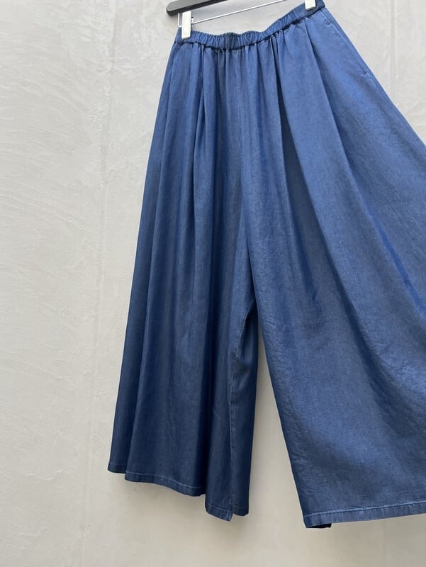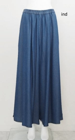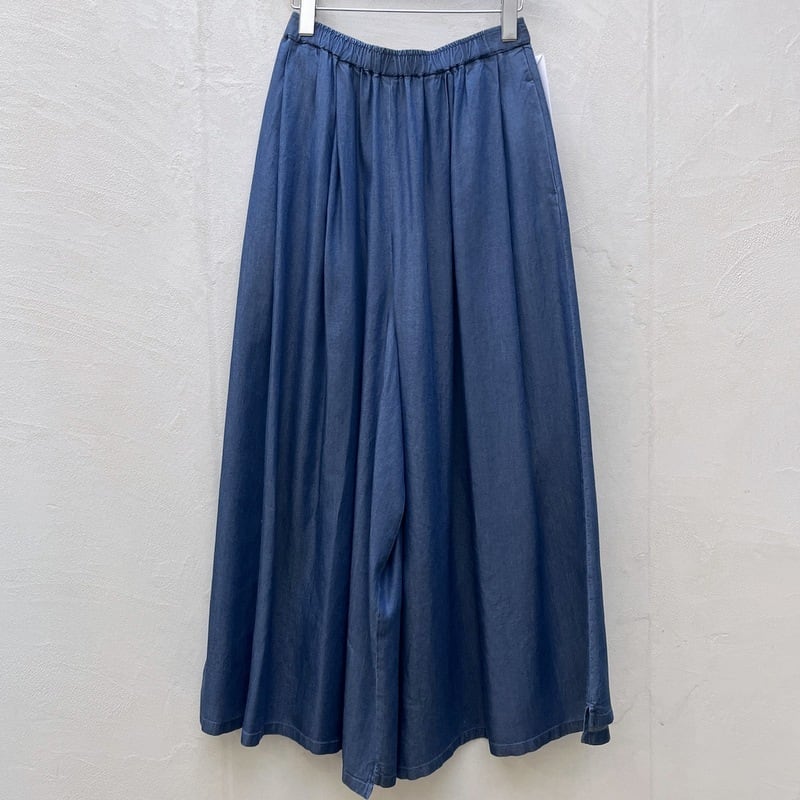 タックとギャザーでボリューム感を持たせた、マキシスカートのように見える非常にワイドな
