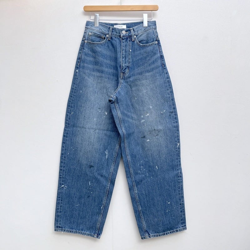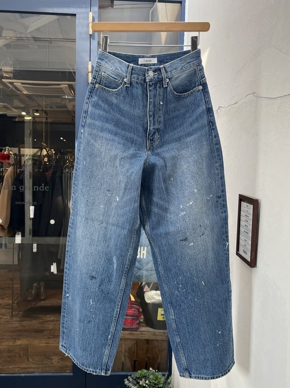 le Melange ルメランジュ ペンキ加工 カーブ デニム ジーンズ 12.8oz 肉厚 スラブデニム ペンキ加工 USED加工 ヴィンテージ ブリーチ カーブデニム ハイウエスト 丸み シルエット 8613502