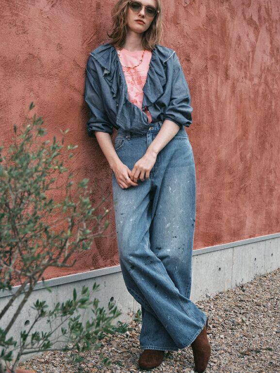 le Melange のペンキ加工カーブデニムです。