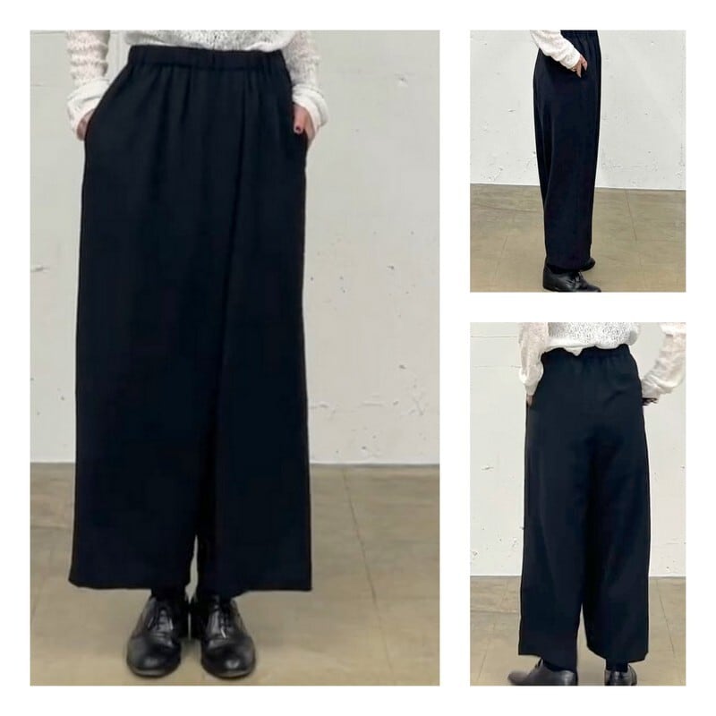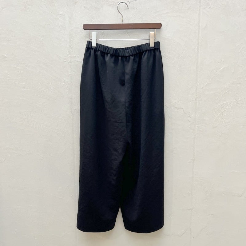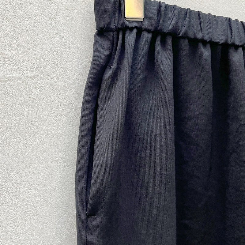 巻きスカートタイプのモードなシルエットを表現したラップライクイージーパンツです。mizuiro ind定番の1枚でフルレングスの上品な雰囲気を演出。ドライツイルワッシャー素材で仕上げたさらっとした肌触りが特徴。ほどよく広いパンツ幅になっており、ウエストはリラックス感のあるゴム使用。上下セットアップでお勧めで、1-230170/テーラードシャツジャケットと春のオケージョン対応に活躍していただけます。