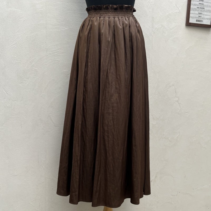 割繊生地ならではのしなやかさが魅力のフレアスカート。