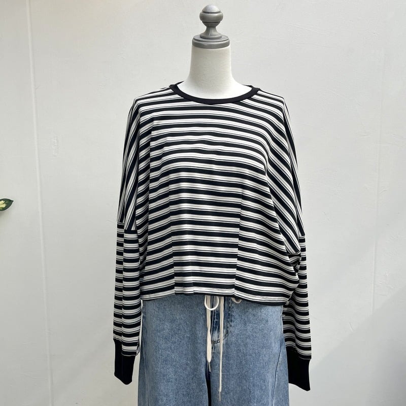 抜け感と着回し力◎ 無地切替えマルチボーダーワイドロンT