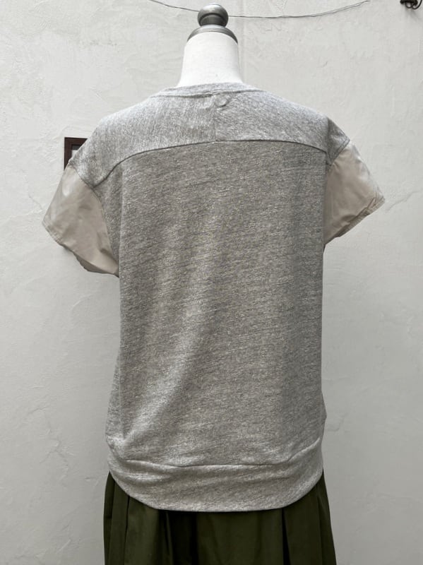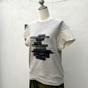 Du Tango(デュ・タンゴ 異素材切り替え 半袖 ペンシルプリントTシャツ