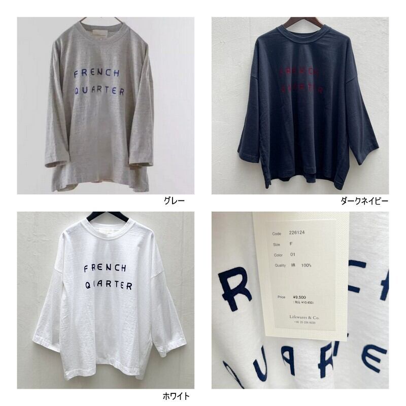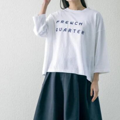a piece of Library(アピースオブライブラリー)フレンチグランド 7分袖 Tシャツ 226124 ホワイト グレー ネイビー