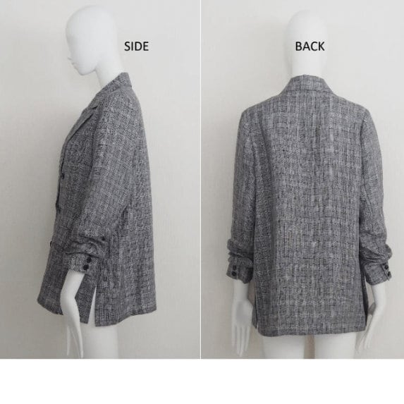 ボクシーでゆとりのあるシルエットに、ピークドラペルのデザインが程よいきちんと感をプラス。