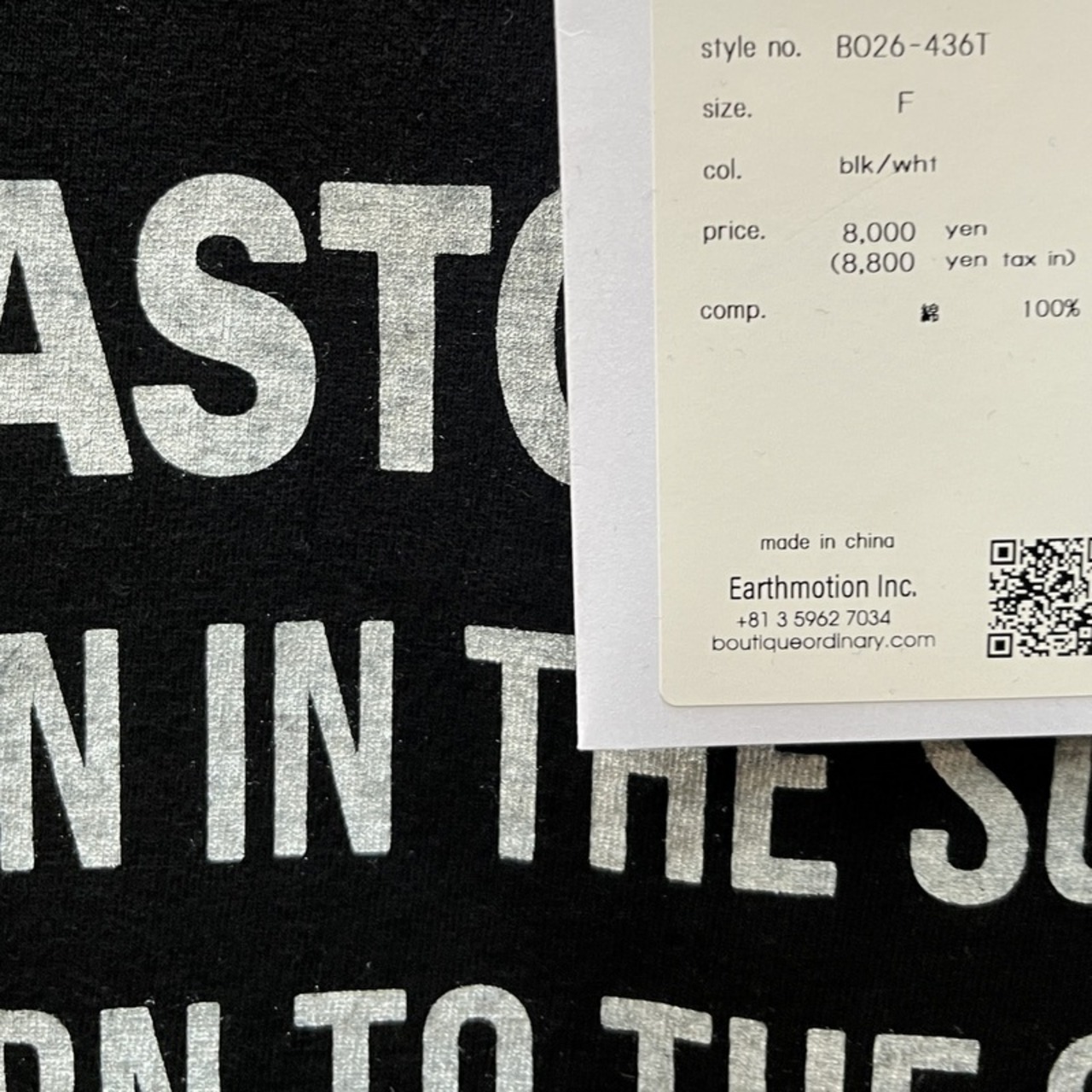 Boutique Ordinary (ブティックオーディナリー )半袖 ロゴTシャツ BO26-436T "GLASTONBURY"