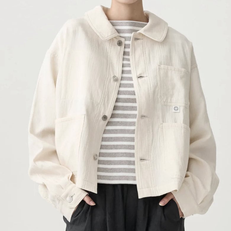 パンツ・スカートどちらにも合わせやすく、春や秋の軽アウターとしても活躍。日常使いしやすい一着です。