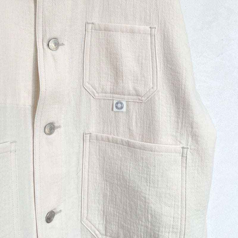 フロントには使い勝手の良いパッチポケットを3つ配置し、胸ポケット下にはブランドロゴタグをさりげなくプラス。シンプルながらもディテールにこだわりが光ります。