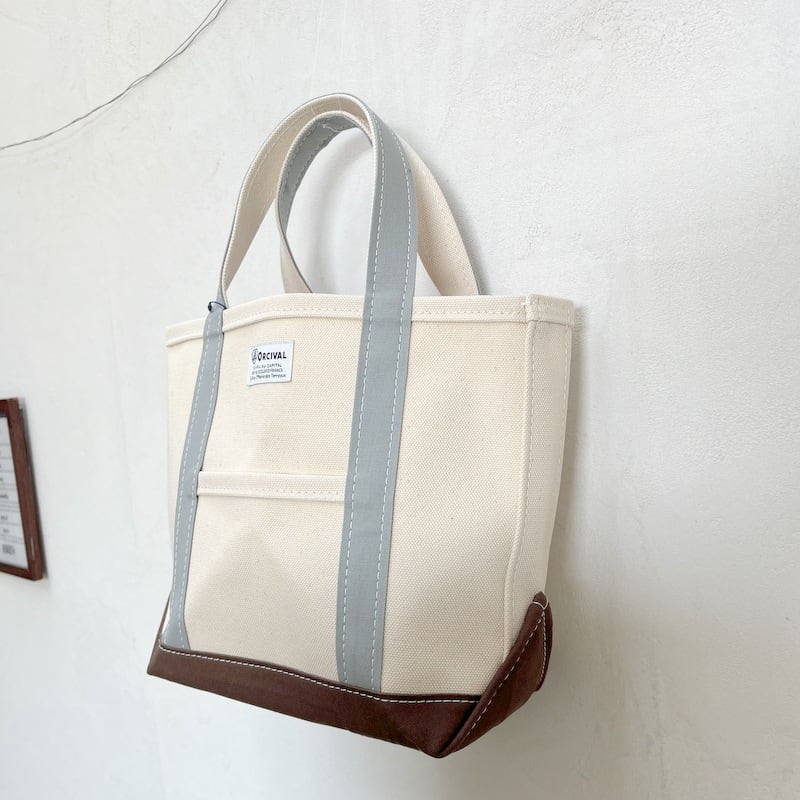 Orcival(オーチバル)コットン キャンバス 3配色トート バッグ Sサイズ OR-H0285 KWC-3 ECRU×GREYISH GREEN×SMOKY BROWN