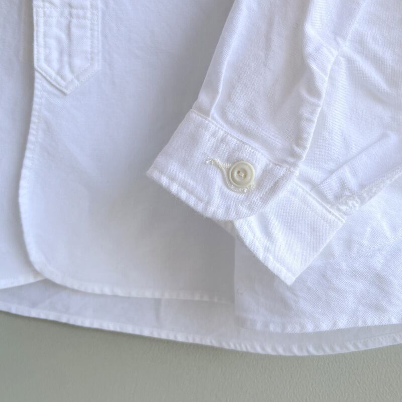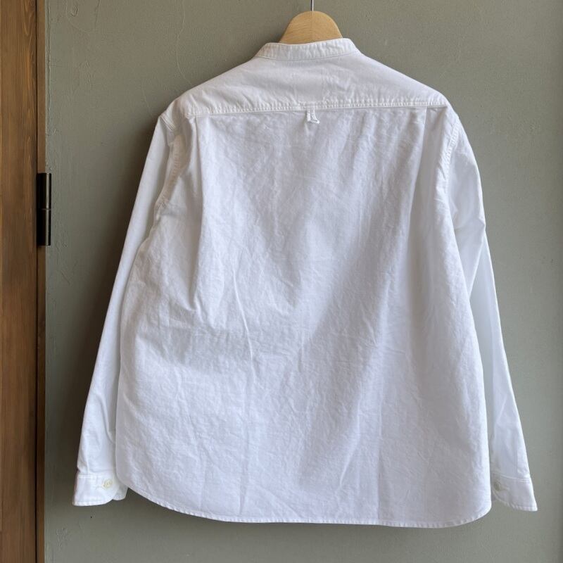 両サイドにポケットが付いた、上品で適度なハリ感を持つオックスフォード生地のバンドカラーシャツ。