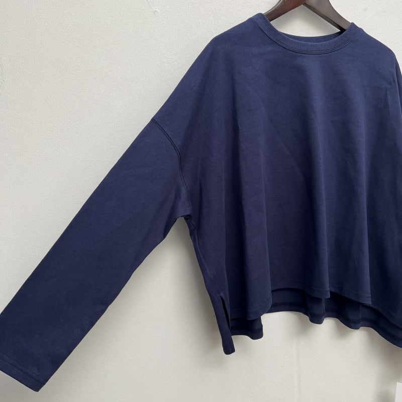 ドロップさせたショルダーと絶妙なサイズ感がオシャレな1枚。