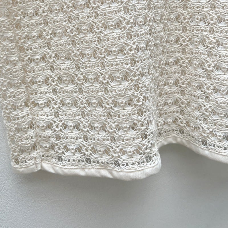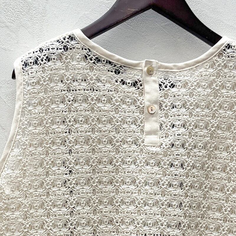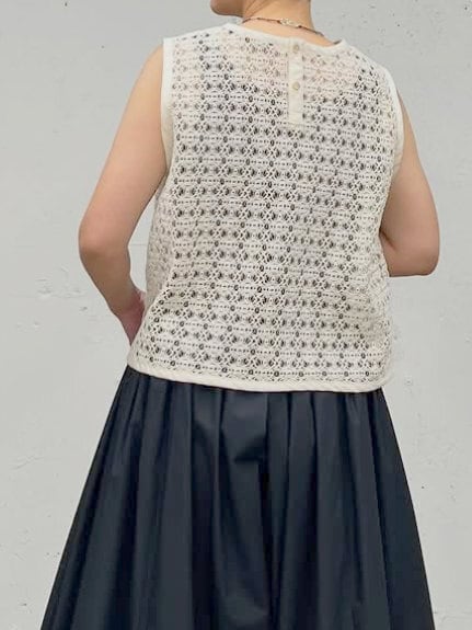 繊細で立体感のあるレースが印象的なクルーネックベスト。ヴィンテージレースを思わせるクラシックな雰囲気が、コーディネートにさりげない華やかさをプラスしてくれます。