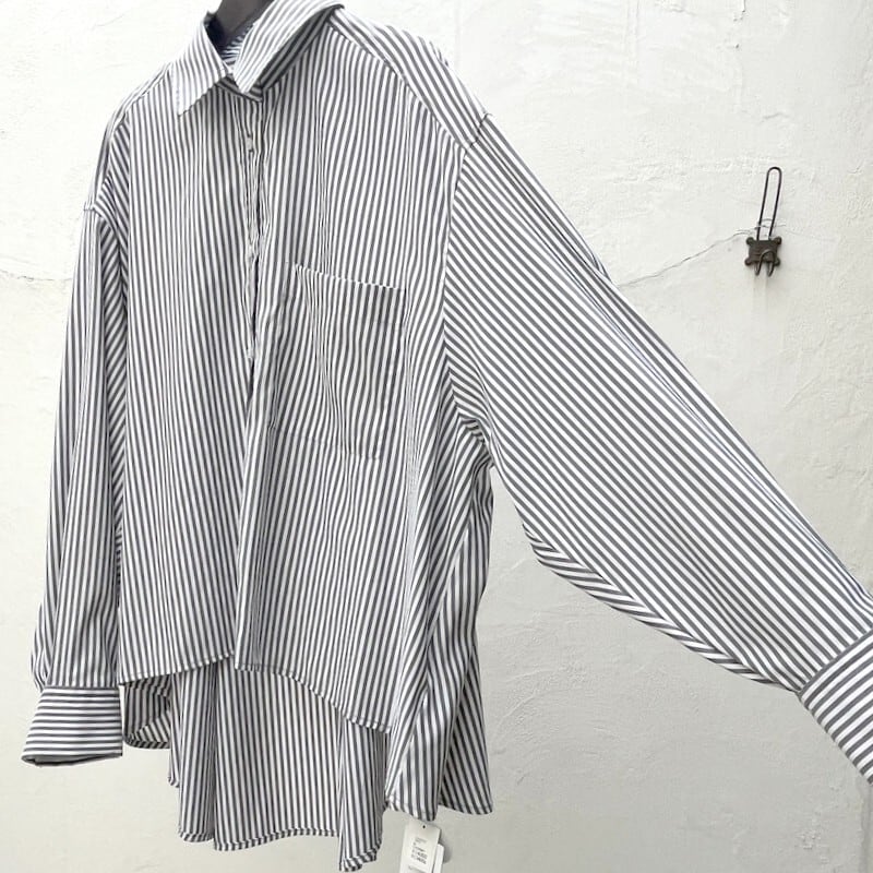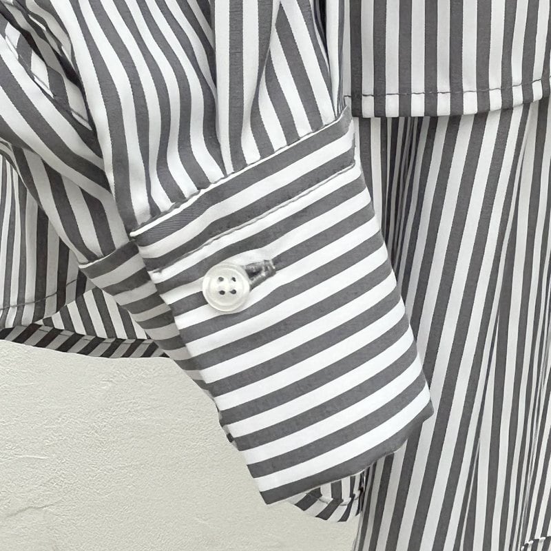 グレーとホワイトの洗練されたストライプ柄が目を惹く、【NUS(ヌース)】の新作シャツ。