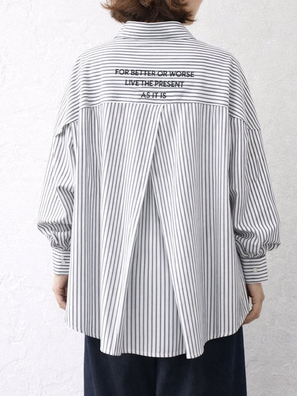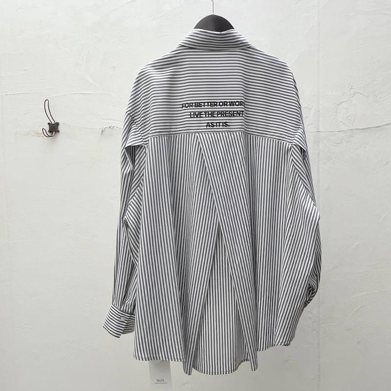 【NUS】バックロゴ ストライプシャツ[632-35007]ホワイト×グレーストライプ