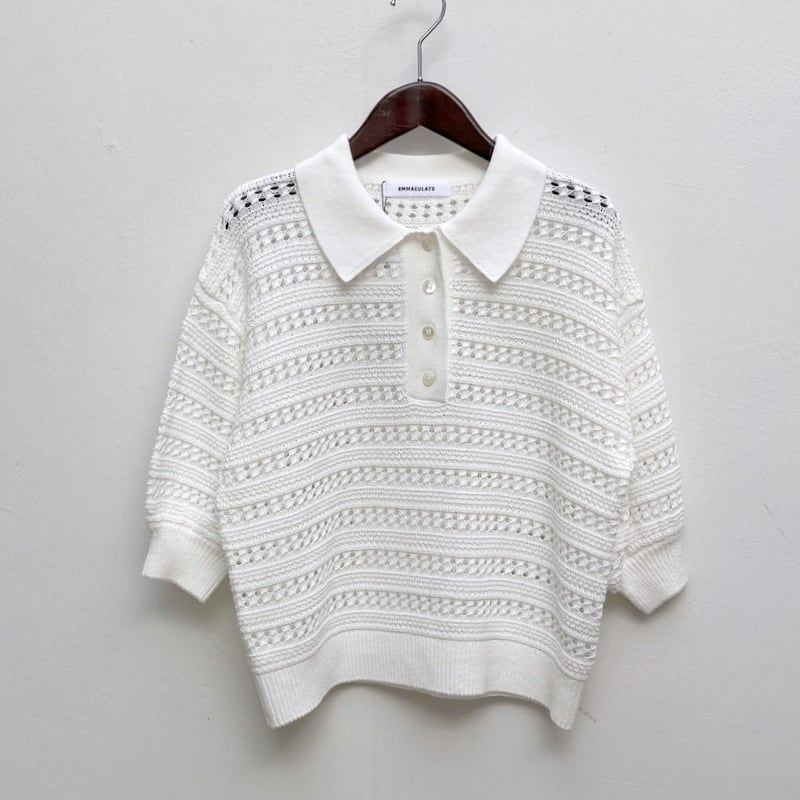EMMACULATE エマキュレイト レース パフスリーブ 襟付き ニット プルオーバー ホワイト 2261K-52430