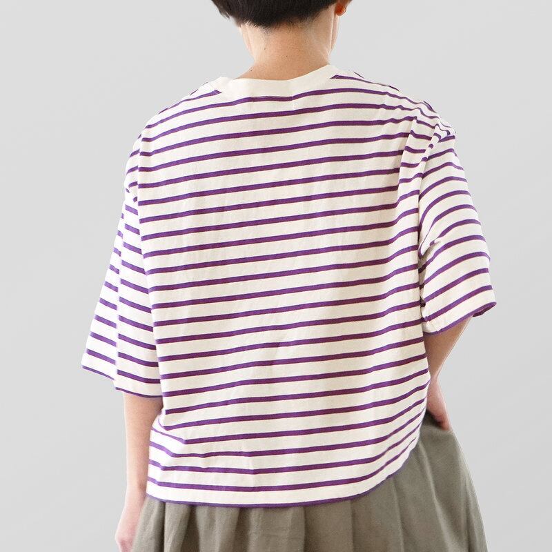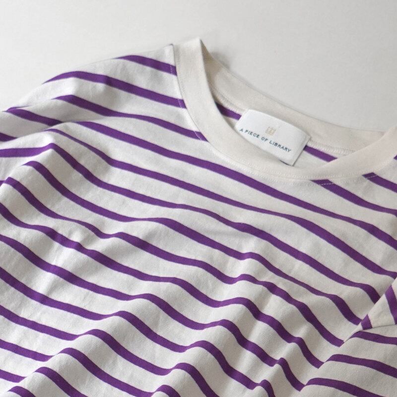 a piece of Library(アピースオブライブラリー)ハーブボーダーコーストT5分袖Tシャツ 226104 クルーネック ワイドT
