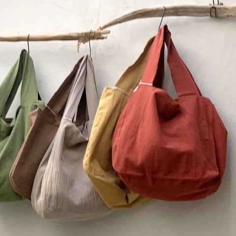 アトリエヌイのオリジナル地「ウォッシュドコットン」で作った、シンプルな色合いのバッグが登場!