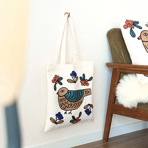 キャンバス地にユニークな動物たちを刺繍で表現したトートバッグ。