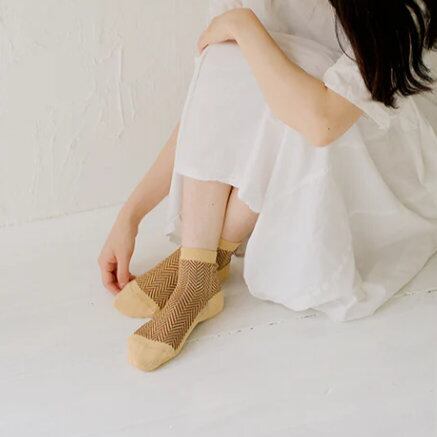 エジプトのギザコットンを使用したヘリンボーン柄の靴下です。コットンなのにシャリシャリとした爽やかな履き心地とさらっとした足通しで、春夏の足元のアクセントになってくれます。サンダルにもとてもぴったりです。