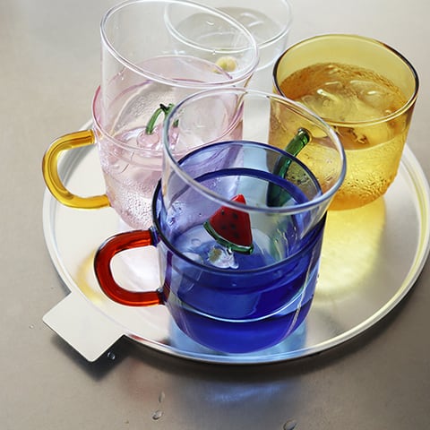 「美味しくなあれ」のおまじないをかけた、ちょっとレトロな2トーンガラスのマグです。
