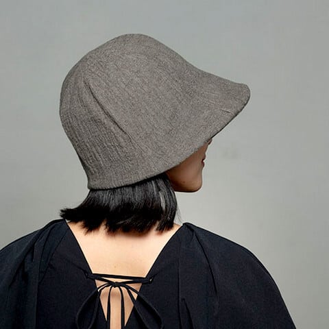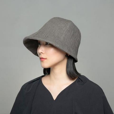 楊柳のような表面変化のある麻素材を使った、小ぶりのチューリップハット。